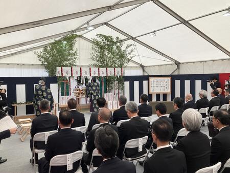 東西街区の新築工事着工を前に、2025年10月29日に本事業の敷地内にて、地鎮祭を行いました。地鎮祭には、本組合・德田理事長をはじめとし、参加組合員である東京建物、旭化成ホームズ、首都圏不燃建築公社、施工者である鹿島・三井住友特定建設工事共同企業体が参加しました。