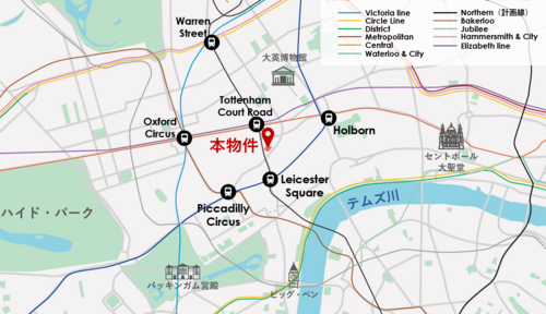 本計画は、ロンドン有数の商業・劇場エリアである Soho や Covent Garden に近接し、「Tottenham Court Road」駅から徒歩3分の利便性を有します。多様性と賑わいに加え、その交通利便性からオフィス立地としての評価が高まる本エリアで、既存躯体の約75%を活用しつつ2層増築し、地上11階/地下1階・延床面積約22,862㎡の建物を、地上13階・地下1階・延床面積約33,487㎡の最新のオフィスビルへ改修します。