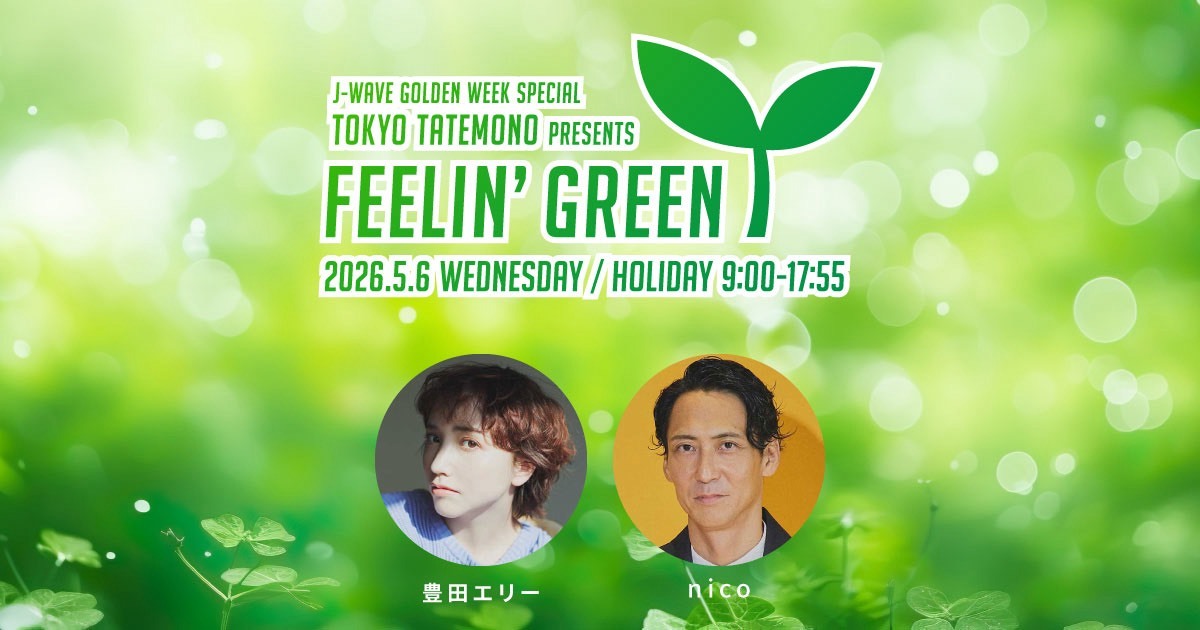 5月6日(水・振替休日)9:00~17:55『J-WAVE GOLDEN WEEK SPECIAL TOKYO TATEMONO presents FEELIN' GREEN』