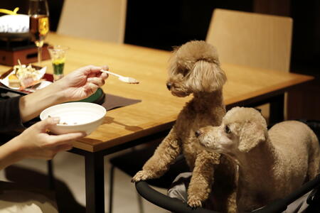 寒暖の差が激しい由布院盆地で育まれる四季折々の農作物や、早朝に豊後水道より水揚げされた魚など、九州の旬の食材を吟味した自慢の創作日本料理を部屋食でお楽しみいただけます。愛犬向けにも地元食材を利用した専用メニューを用意しており、愛犬と一緒に食事を楽しむことができます。